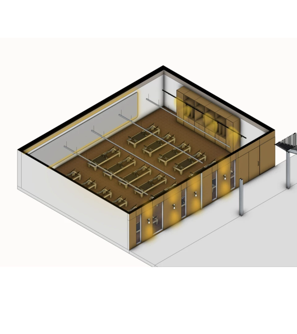 • De helft van de multihal zal tijdelijk worden gebruikt als opslagplaats voor bouwmaterialen.
